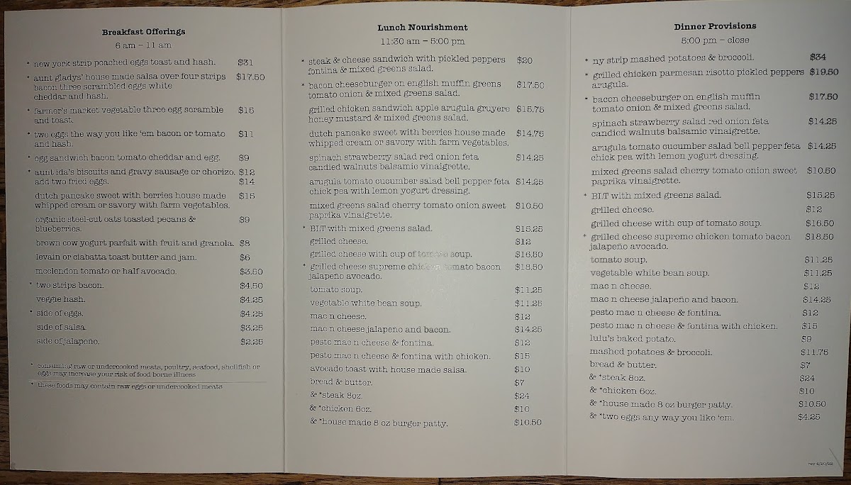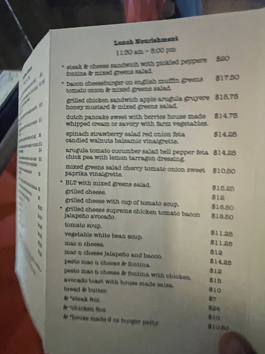 For lunch, indulge in the mouthwatering Steak and Cheese Sandwich bursting with flavor from pickled peppers and complemented by a fresh mixed greens salad at $15. Or, enjoy the delightful Grilled Cheese Supreme, which features chicken, tomato, crispy bacon, jalapeno, and avocado—perfectly priced at $15. And for those craving a juicy and customizable option, the Bacon Cheeseburger on an English muffin with fresh greens and toppings is a legendary choice, available for just $14.
